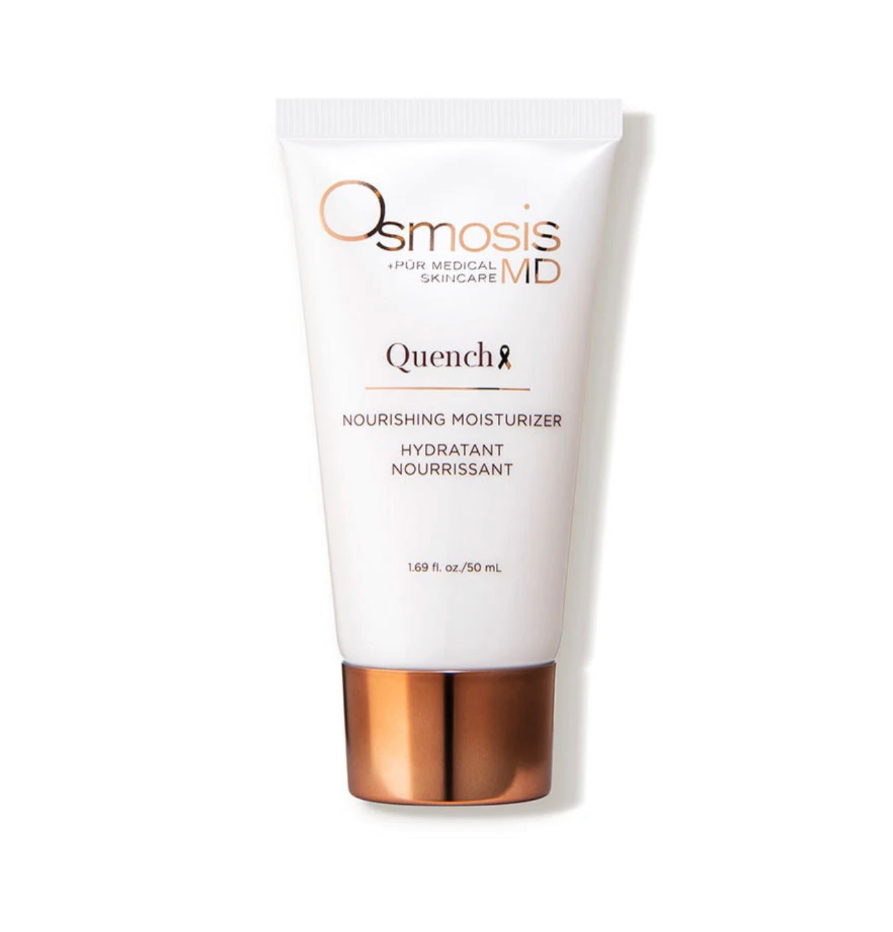 OsmosisMD Quench Intense Hydrator utilizes a trio of hydrating ingredients to help give your skin a healthy glow. Jojoba oil conditions your complexion while organic shea butter imparts nourishing moisture. Hyaluronic acid multiplies the effects of these elements by sealing in hydration with an invisible saturation barrier. Ideal for dry skin types.